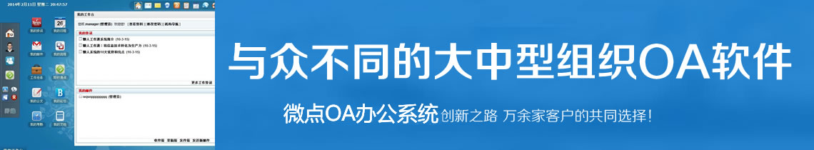 微點OA辦公系統(tǒng)是適用于企事業(yè)單位的通用型網(wǎng)絡辦公軟件,融合了微點信息長期從事管理軟件開發(fā)的豐富經(jīng)驗與先進技術(shù),該系統(tǒng)采用領(lǐng)先的B/S(瀏覽器/服務器)操作方式,使得網(wǎng)絡辦公不受地域限制。最新版本全面支持IE、360、遨游、世界之窗等主流桌面瀏覽器和安卓平臺UC瀏覽器和蘋果平臺safari瀏覽器等移動終端.