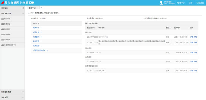 用戶管理、機(jī)構(gòu)設(shè)置、查新報告模板管理、查新目的管理、委托說明管理、加急費(fèi)率管理、系統(tǒng)日志。