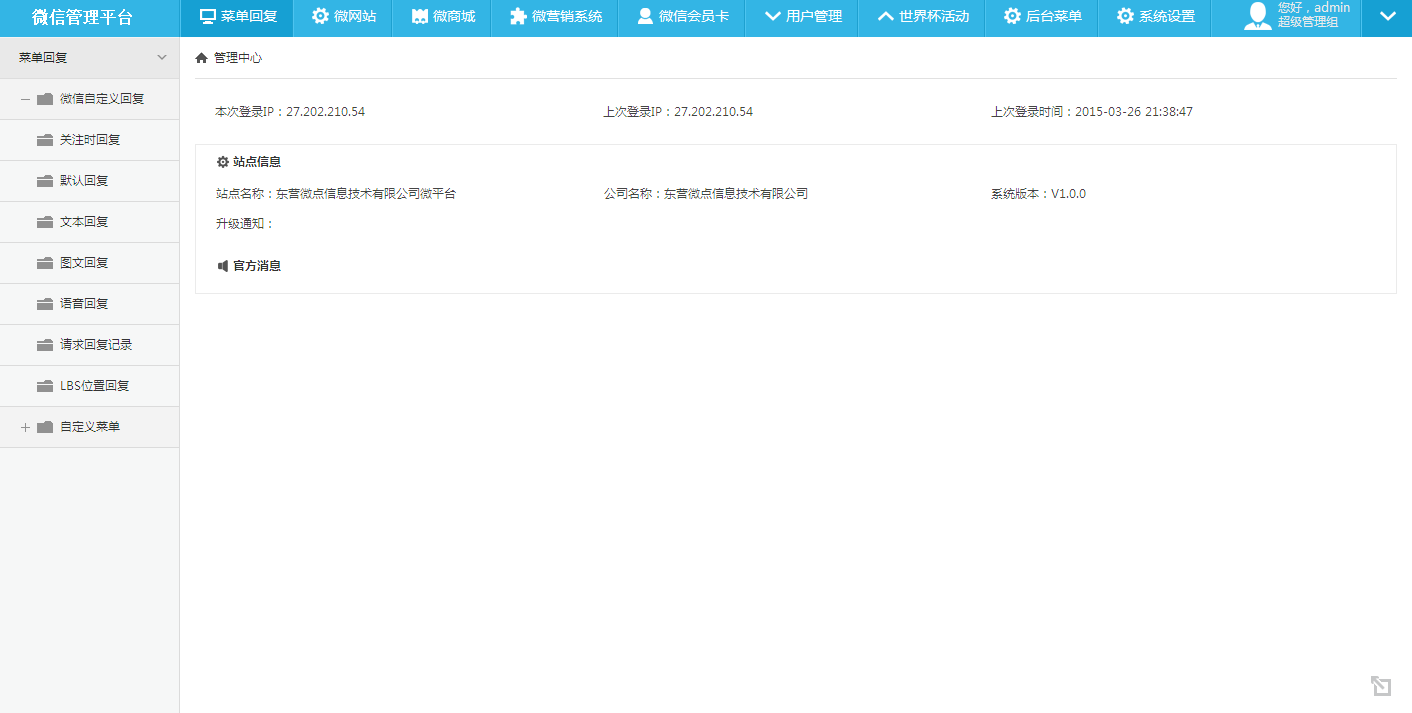 東營微點信息技術有限公司微信平臺。方便建站,專注微營銷,微生活。